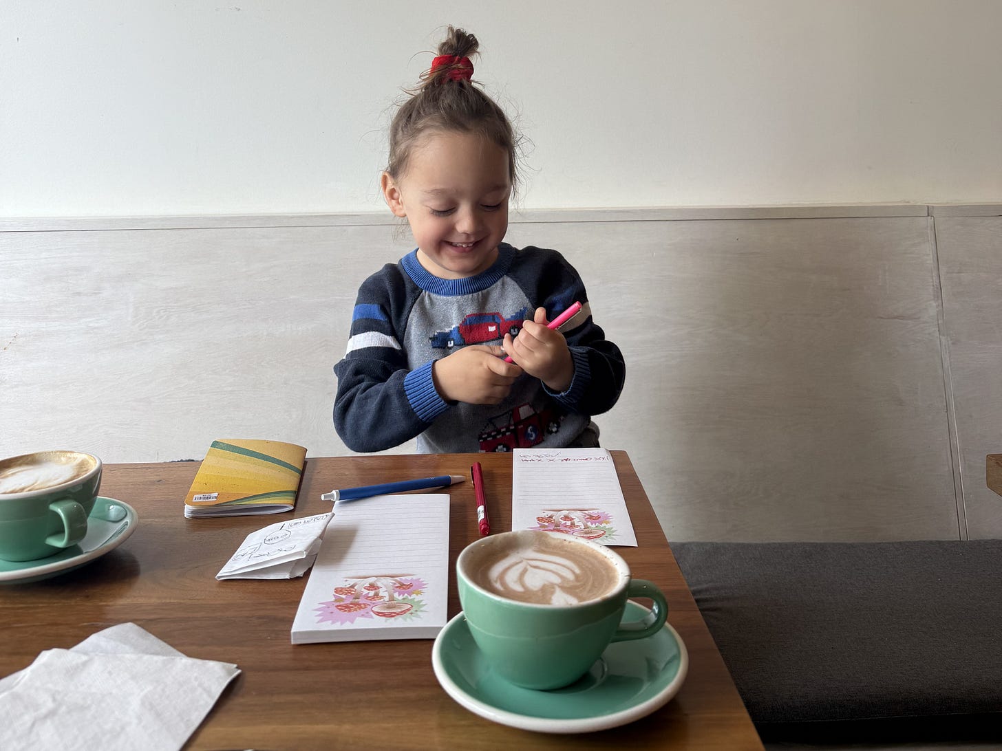 I tried to write too. I wanted something creative to shake loose, but all that came out were to-do lists, half-thought Substack ideas, and the dark jagged places I still need to face in my shadow. I found myself writing about how, no matter what I do, I still feel like a fraud, like I’m only pretending to be a writer, y’know? As if this whole life I’ve built around words is an elaborate game of make-believe. After all this time, why is it still so hard to fully hold the truth of my own work? There’s a whole essay brewing in that question, but at the cafe I had only one small scrap of paper to contain all my doubts and the inner critic’s relentless commentary. I was sinking into it when my son leaned over, looked at my scribbles, and asked, “What’s your poem about, Mommy?”
