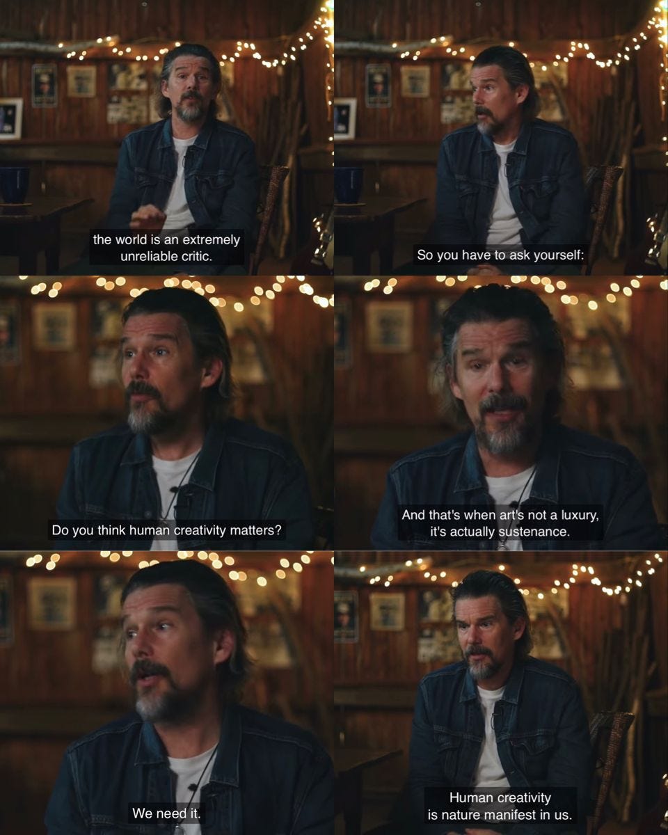 What always brings me back to him and his work, though, is the way he talks about creativity. Like how he says art is sustenance and human creativity is nature manifest in us, which feels so raw and true in a way that hits the body before the mind. You fall in love, you lose someone, you can’t sleep, you’re on your knees wondering if anyone has ever felt this goddamn sad or this alive or this scared, and the only thing that meets you there is art.